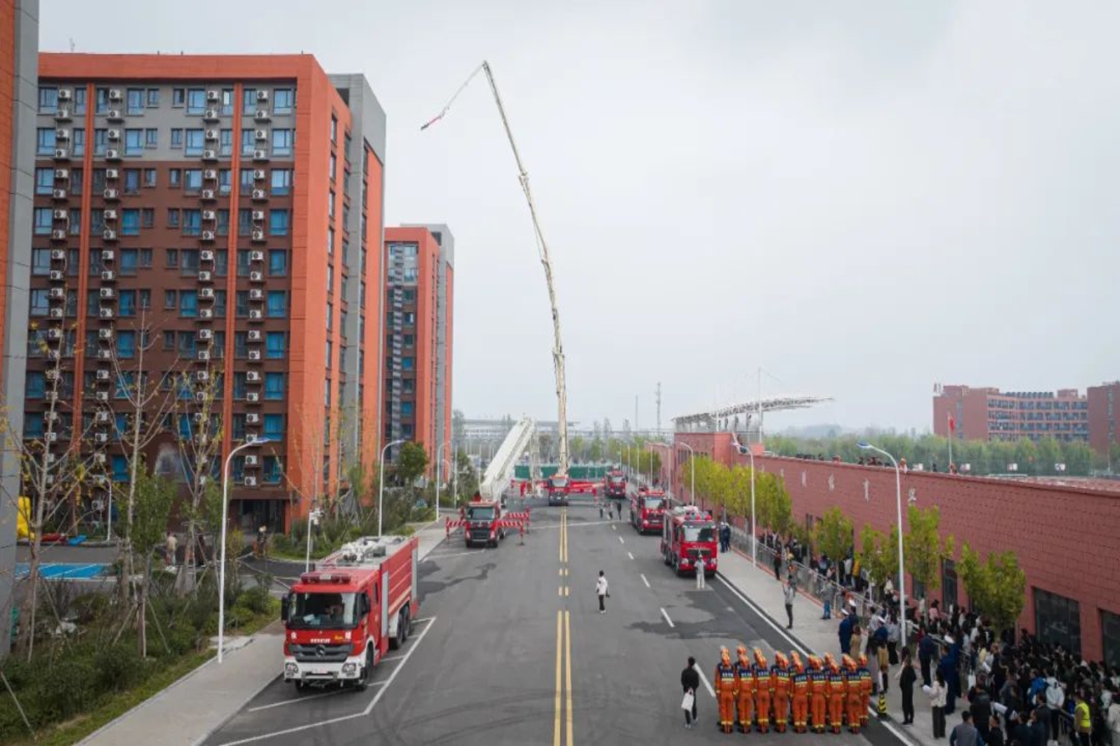 启动仪式后,在场人员共同观看了由学校和莱西市消防大队共同组织的校园消防救援疏散演练。