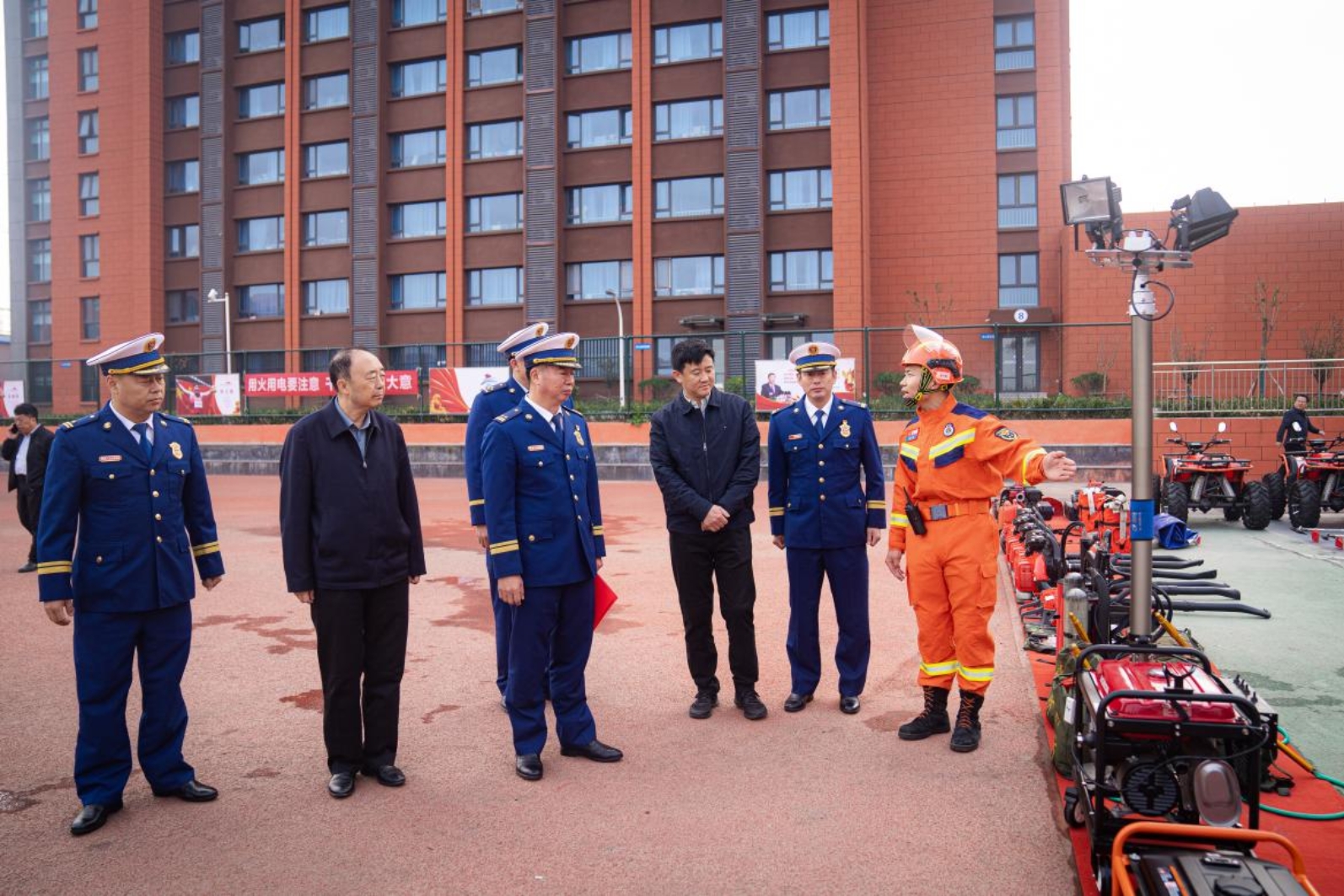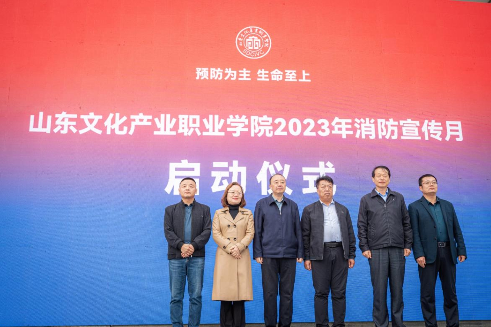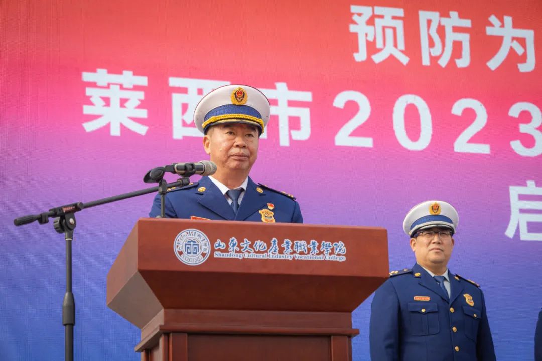 为深入贯彻习近平总书记关于公共安全教育的重要指示精神,推动社会各界进一步关注消防、学习消防、参与消防,2023年11月9日上午,我校联合莱西市消防救援大队共同举办消防宣传月启动仪式。青岛市消防救援支队党委委员、副政委尉永波,莱西市人民政府副市长张慎,党委副书记、校长曹胜强出席并致辞。莱西市消防救援大队长董习波,大队教导员孙长征,副大队长任庆斌,学校党委副书记、纪委书记曾宪明,副校长邵勇、汪蓉樱及相关处室负责人参加启动仪式。