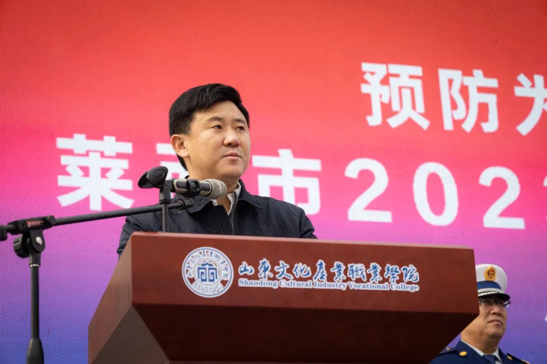 莱西市副市长张慎致辞并宣布2023年消防宣传月正式启动。