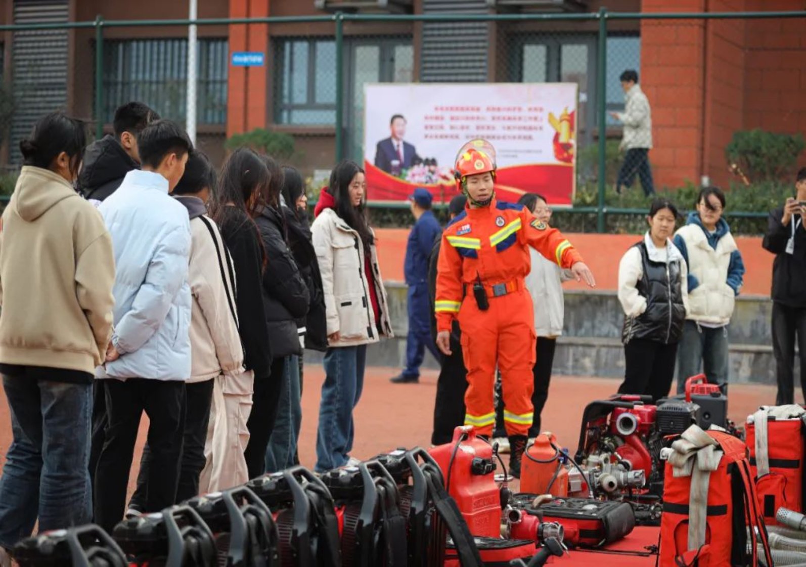 领导和师生共同观看了宣传警示片,参观了消防装备展,多角度、零距离学习掌握消防知识的过程中,同学们的消防安全意识得到了强化,消防安全素质得到了提升,营造出良好的消防安全氛围。