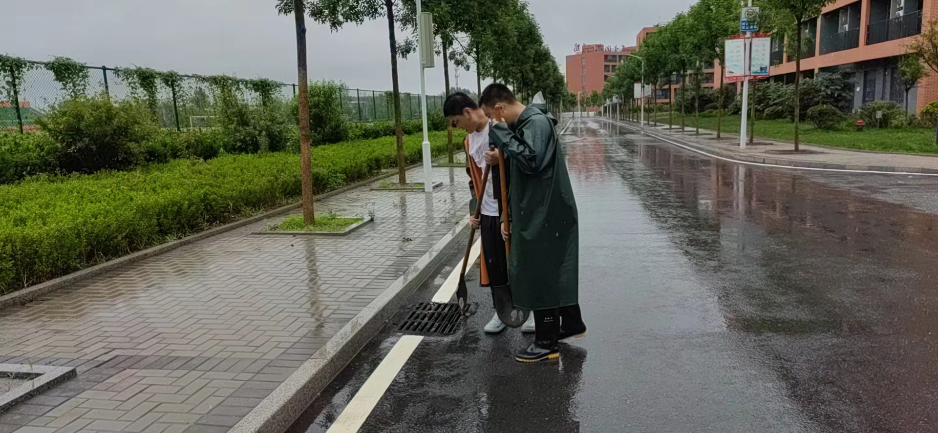 在学校地势低洼处准备沙袋,备挡雨水;人工湖河道进行淤泥、垃圾树枝等杂物清理工作;按照上级防汛要求配齐防汛物资,并设立专用仓库由专人看管。
