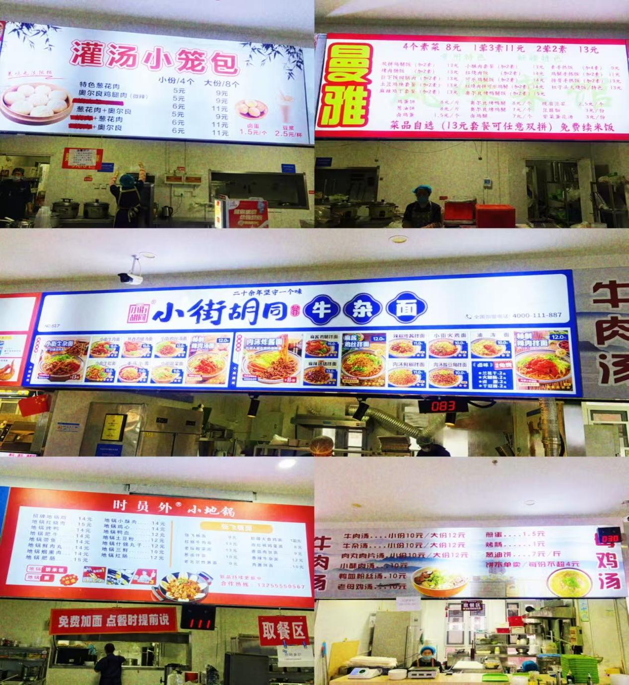 二餐厅的掉渣饼香酥掉渣,曹氏鸭脖鲜辣过瘾,猪肚鸡温润滋补,擂椒饭香辣开胃,自选菜丰富多样任你挑选。