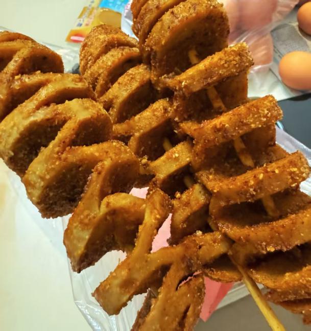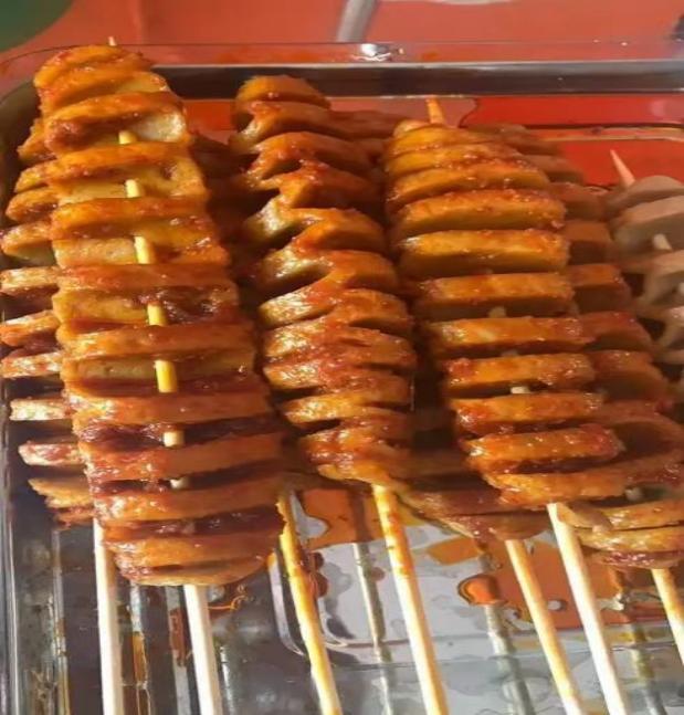 【2】网红大面筋:解馋王者的解药,谁能拒绝刚出炉的烤面筋啊!外皮烤得微脆,咬下去 QQ 弹弹,咸香中带着微辣,签子上挂着的酱汁都舍不得浪费。下晚自习买两串边走边吃,学生时代的快乐不就在这吗?解馋又顶饱~