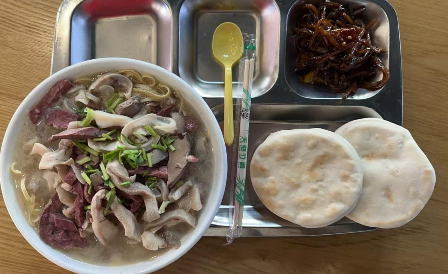 慢火熬煮的羊骨汤底乳白醇厚,白芷与白胡椒巧妙去膻增香,喝着鲜而不腻。羊肚脆韧、羊肝绵密、羊心紧实口感惊喜。加上胡椒粉和辣油,鲜辣交织从喉咙暖到胃,驱散寒风与复习疲惫。